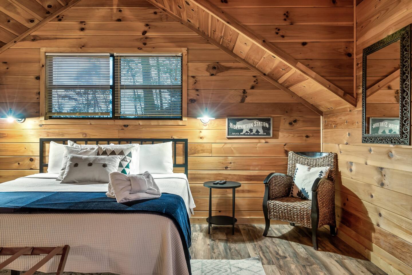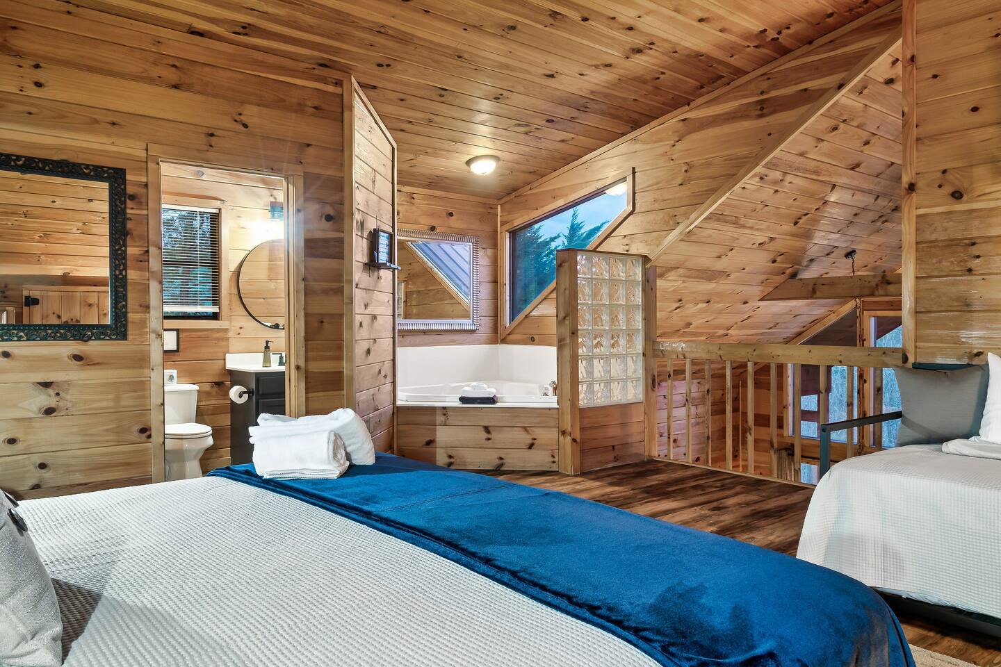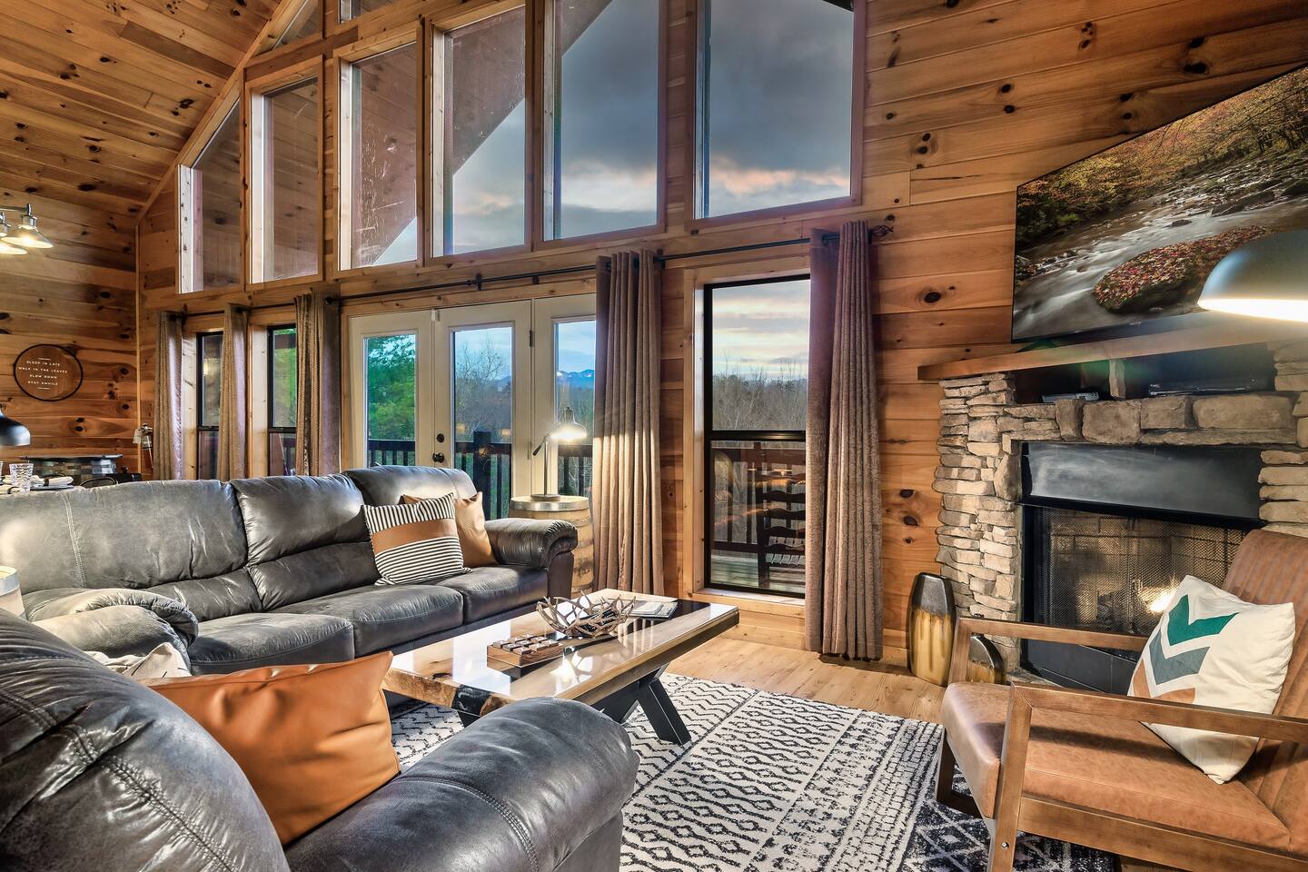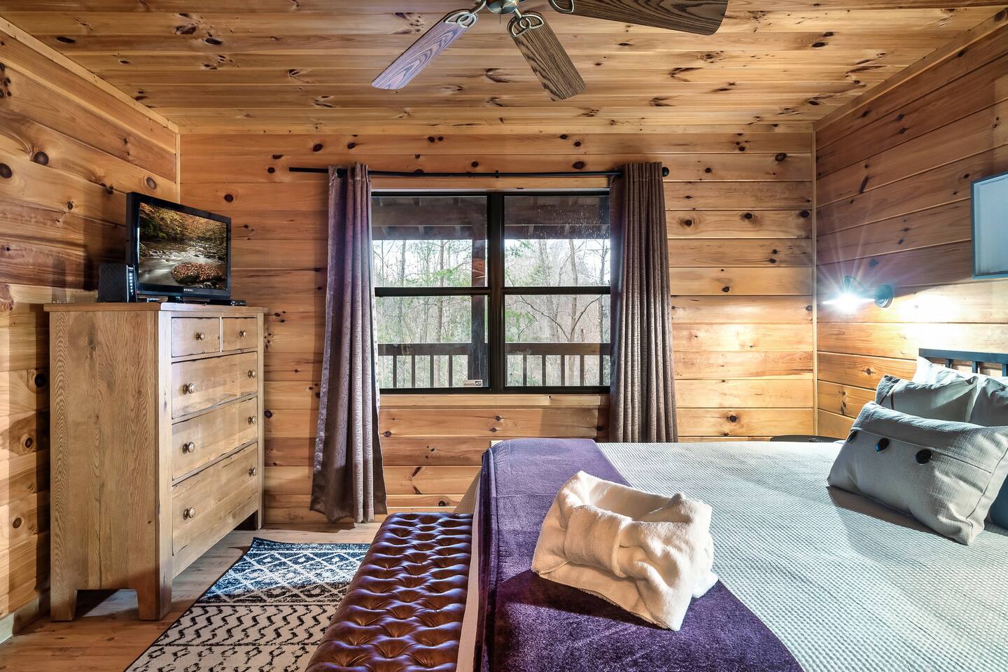 The Great Room: We love that our cabin is cozy and private, and we know you’ll enjoy the open concept Great Room. No matter if someone is cooking in the kitchen, playing cards at the dining table, or reading a book by the fire, everyone will feel connected. The 2-story wall of windows let’s in natural light and allows you to see out towards the amazing Mountain View’s. Private, cozy, comfortable. The Kitchen: The best part about renting an entire cabin is being able to cook some, or all, of your meals. Or maybe you prefer to just heat up leftovers. Our kitchen has just been remodeled with all new stainless-steel appliances; dishwasher, stove, microwave, and side-by-side refrigerator with ice maker and water dispenser. We’ve also stocked the cupboards with plenty of dish ware, silverware, baking utensils, blender, toaster, crock-pot, tea kettle and Keurig coffee maker. We will provide hand soap and a few dishwasher cleaning pods and a roll of paper towel. Main Level King Suite: This bedroom has a door for privacy and is located across the hall from the main level bathroom. There is a closet with hangers, dresser, luggage rack, bench at the end of the bed, full length mirror, and Smart TV for streaming YouTube Live or login to your favorite apps. There are also 2 rollaway beds stored in this closet. Feel free to locate those beds where it’s most comfortable within the cabin. Sheets, blankets and pillows are available for you to make up the rollaway beds if they are needed. Lastly, there is a pack-n-play stored in this closet as well. Feel free to use as needed, we DO NOT provide sheets or blankets for the pack-n-play. Open Loft King Suite: The 2nd story loft is another king suite and is open to the downstairs, meaning there isn’t a door for privacy. However, the room is very spacious so it’s not possible to see the bed from the lower level. The loft also has an en-suite full bathroom, closet with hangers, dresser, luggage rack, and TV with cable. For additional lounging or sleeping, the loft also offers a twin-size daybed with a twin-size trundle that can be pulled out from underneath when needed. Sheets, blankets and pillows are available for you to make up the trundle bed if it’s needed. The Bathrooms: The cabin has a full bath on the main level of the cabin, and a full bath in the 2nd story loft. Both bathrooms have a shower/tub surround (they are not walk-in showers). We provide bath towels, hand towels and washcloths as well as shampoo, conditioner, body wash, hand soap, and a starter roll of toilet paper. Hot Tub: One of the best features is the 4-person outdoor hot tub. Located on the side of the deck for privacy yet still provides a gorgeous view of the Smoky Mountains. Our hot tub is emptied and cleaned between each guests visit, so please allow enough time for the water temperature to heat up upon check-in. And please lower the insulated cover to hold in the heat between uses. Relax and enjoy! We want our guests to know what to expect and be prepared, so here is a list of suggested items you may want to bring as we DO NOT provide: Coffee, tea or filters Alarm clock