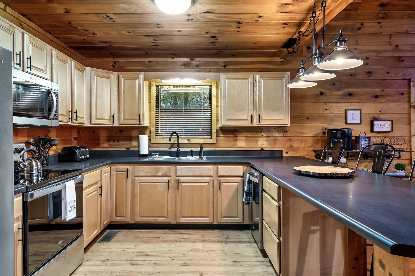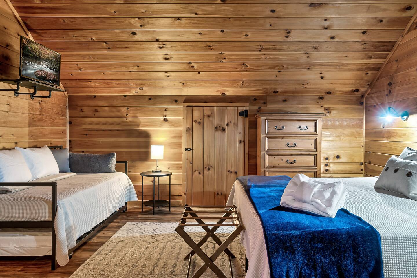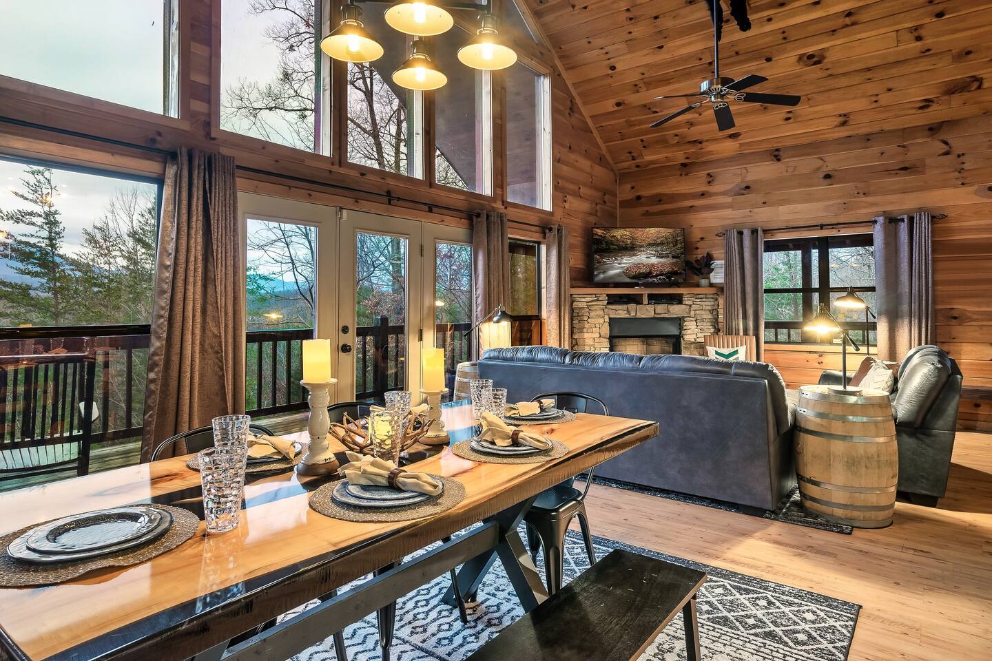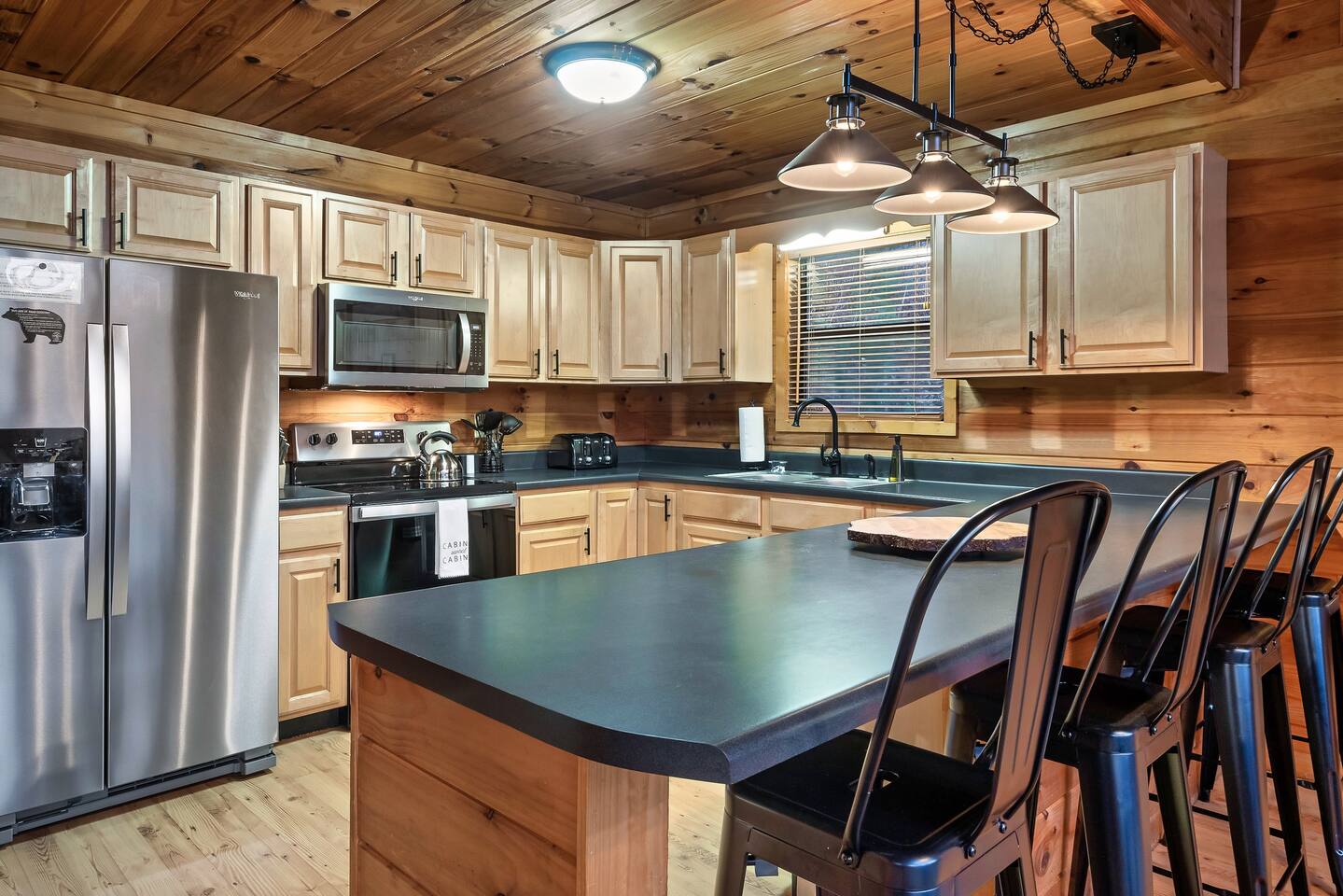 The Great Room: We love that our cabin is cozy and private, and we know you’ll enjoy the open concept Great Room. No matter if someone is cooking in the kitchen, playing cards at the dining table, or reading a book by the fire, everyone will feel connected. The 2-story wall of windows let’s in natural light and allows you to see out towards the amazing Mountain View’s. Private, cozy, comfortable. The Kitchen: The best part about renting an entire cabin is being able to cook some, or all, of your meals. Or maybe you prefer to just heat up leftovers. Our kitchen has just been remodeled with all new stainless-steel appliances; dishwasher, stove, microwave, and side-by-side refrigerator with ice maker and water dispenser. We’ve also stocked the cupboards with plenty of dish ware, silverware, baking utensils, blender, toaster, crock-pot, tea kettle and Keurig coffee maker. We will provide hand soap and a few dishwasher cleaning pods and a roll of paper towel. Main Level King Suite: This bedroom has a door for privacy and is located across the hall from the main level bathroom. There is a closet with hangers, dresser, luggage rack, bench at the end of the bed, full length mirror, and Smart TV for streaming YouTube Live or login to your favorite apps. There are also 2 rollaway beds stored in this closet. Feel free to locate those beds where it’s most comfortable within the cabin. Sheets, blankets and pillows are available for you to make up the rollaway beds if they are needed. Lastly, there is a pack-n-play stored in this closet as well. Feel free to use as needed, we DO NOT provide sheets or blankets for the pack-n-play. Open Loft King Suite: The 2nd story loft is another king suite and is open to the downstairs, meaning there isn’t a door for privacy. However, the room is very spacious so it’s not possible to see the bed from the lower level. The loft also has an en-suite full bathroom, closet with hangers, dresser, luggage rack, and TV with cable. For additional lounging or sleeping, the loft also offers a twin-size daybed with a twin-size trundle that can be pulled out from underneath when needed. Sheets, blankets and pillows are available for you to make up the trundle bed if it’s needed. The Bathrooms: The cabin has a full bath on the main level of the cabin, and a full bath in the 2nd story loft. Both bathrooms have a shower/tub surround (they are not walk-in showers). We provide bath towels, hand towels and washcloths as well as shampoo, conditioner, body wash, hand soap, and a starter roll of toilet paper. Hot Tub: One of the best features is the 4-person outdoor hot tub. Located on the side of the deck for privacy yet still provides a gorgeous view of the Smoky Mountains. Our hot tub is emptied and cleaned between each guests visit, so please allow enough time for the water temperature to heat up upon check-in. And please lower the insulated cover to hold in the heat between uses. Relax and enjoy! We want our guests to know what to expect and be prepared, so here is a list of suggested items you may want to bring as we DO NOT provide: Coffee, tea or filters Alarm clock