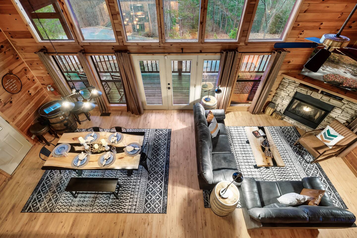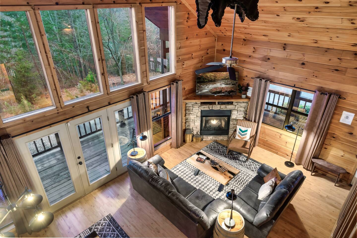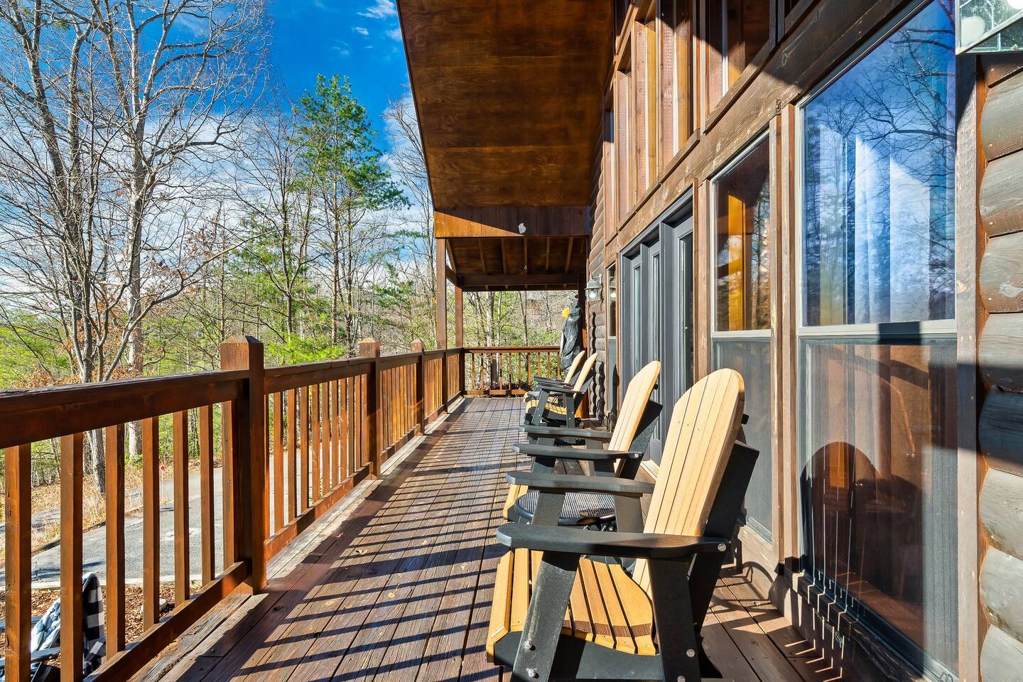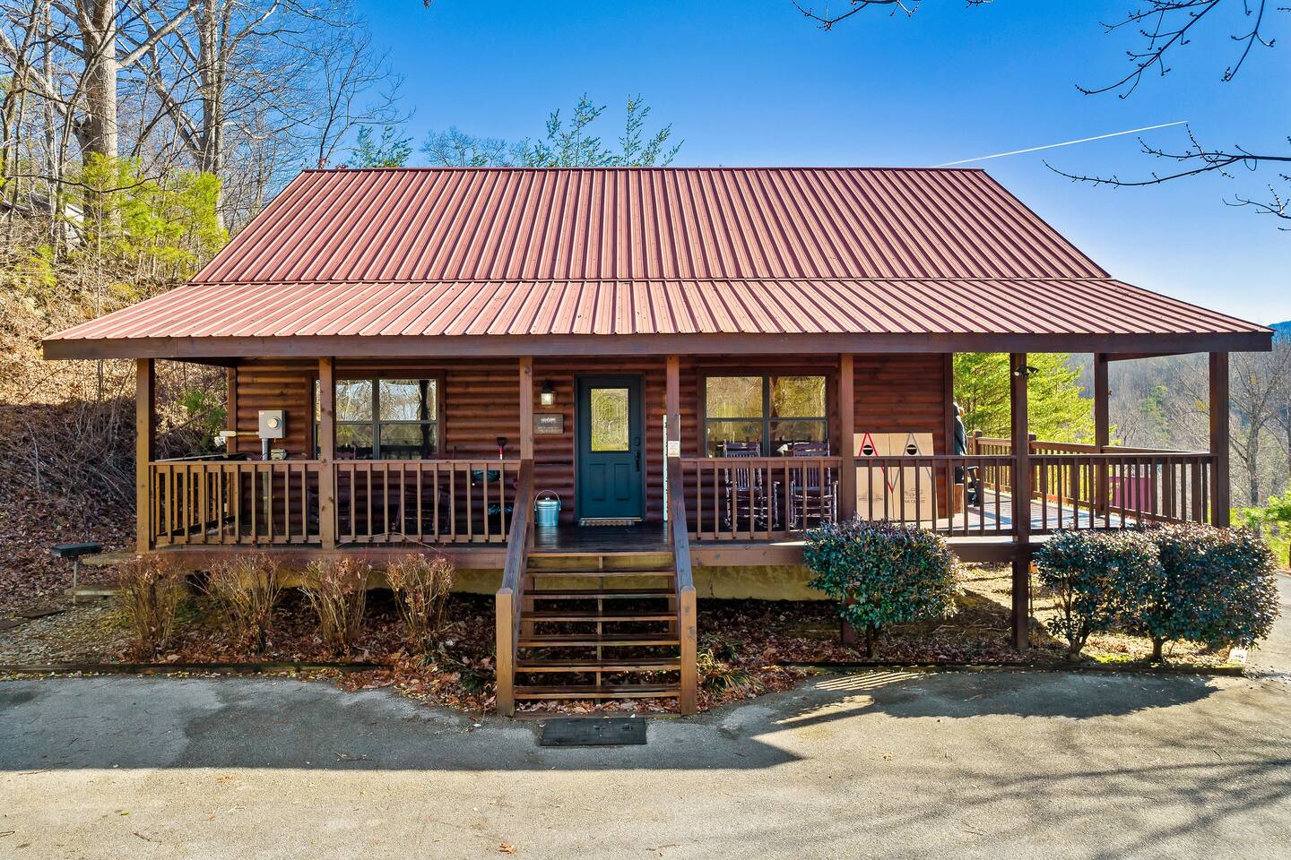 We are located at the end of the street on a cul de sac. There are a total of 3 cabins around us, and we're separated by tree's which provides a ton of privacy.