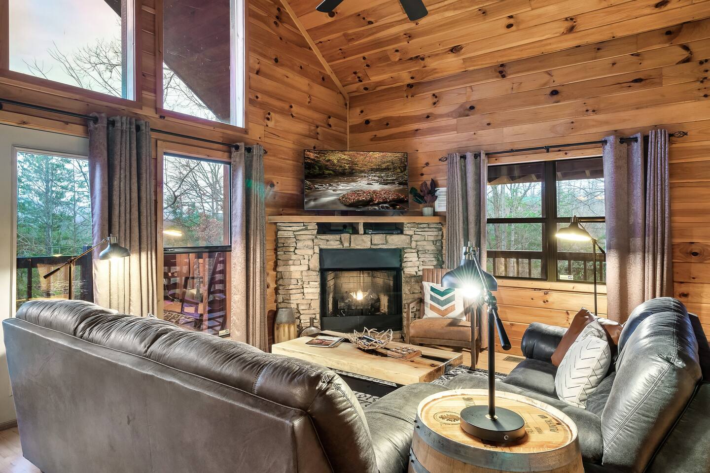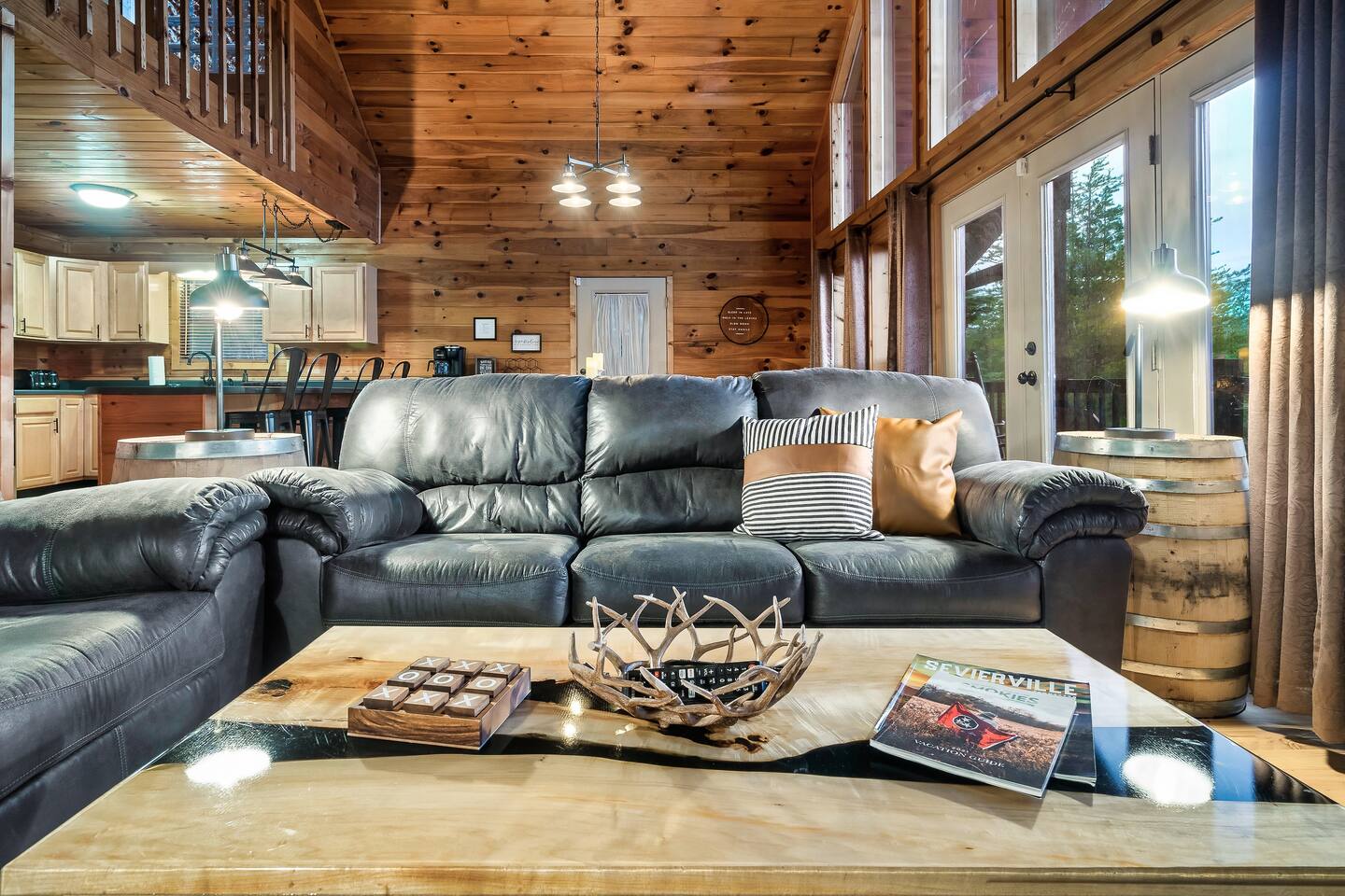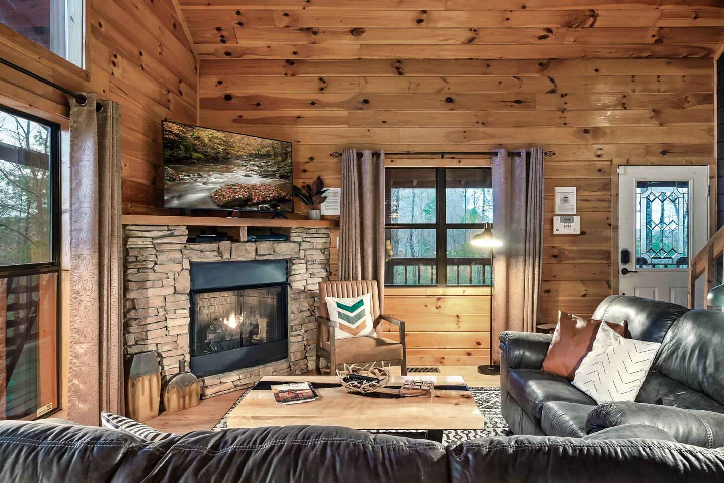 BEST LOCATION-Centrally located between Pigeon Forge (11 mi) & Gatlinburg (7 mi), 4K Cabin is in the most desirable location. Our private cabin has been newly updated. * 2 KING SUITES each with designated full baths * MOUNTAIN VIEWS from the large wrap around deck. * HOT TUB looking out onto the Smoky Mountains * FIRE PIT with mountain views * MULTI-CADE RETRO VIDEO GAME machine fun for kids and adults * Cozy up by the GAS FIREPLACE in the Great Room * PARKING for up to 4 vehicles